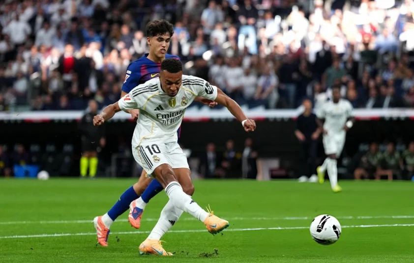 Barcelona dần lấy lại thế trận nhờ tốc độ của Yamal và Marcus Rashford – tân binh được mượn từ Manchester United. Phút 28, Yamal có pha solo xuất thần bên cánh phải, kiến tạo cho Rashford dứt điểm cận thành, nhưng thủ môn Thibaut Courtois xuất sắc cản phá. Real đáp trả ngay lập tức: Phút 35, Jude Bellingham – người chơi hay nhất trận – có đường chuyền tinh tế cho Mbappe, và “siêu sao Pháp” bình tĩnh sút chéo góc mở tỷ số 1-0. Bàn thắng này khiến Bernabeu vỡ òa, khẳng định sức mạnh tấn công của Real.
